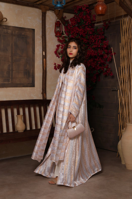 Grace meets sophistication in our Golden Blush Abayas. Crafted with shimmering details...