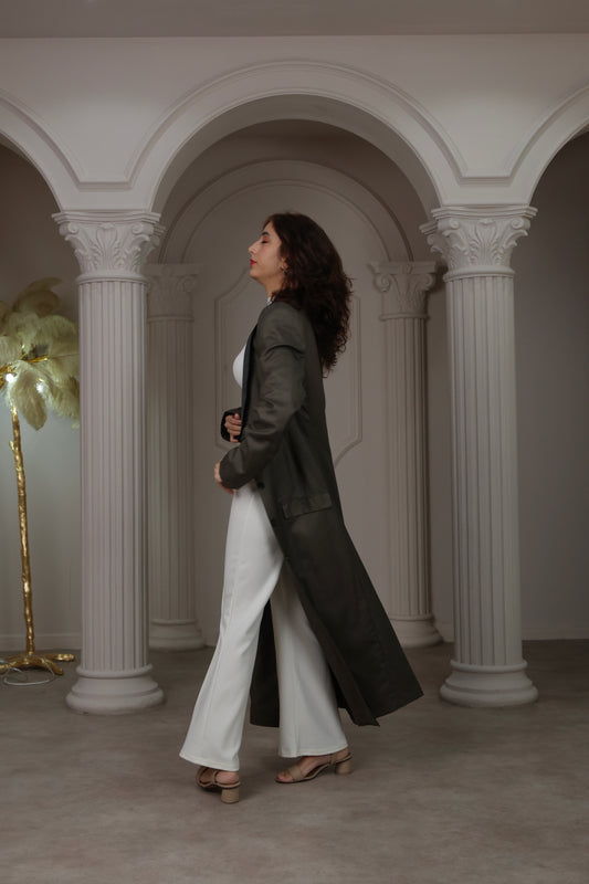 Longline Tailored Coat - Olive Green